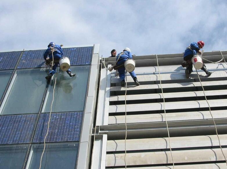 一.高层外墙工程包括:高层外墙清洁、高层玻璃幕清洁、高层外墙粉刷,高空外墙广告安装,因为高层外墙工程存在着危险性和复杂性,所以这项工作以是有着相当程度的科学性和专业性。 专业的保洁服务公司的施工人员是经过专业培训后及有多次高空作业经验。且大部分高空作业都会采用吊板式进行高空作业: